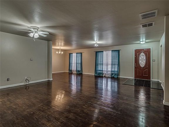 This beautiful home is just 10 min from Down Town OKC and 5 min from TAFB! It features 4 bedrooms 3 full baths, 2 large living areas, laundry room, and separate dining area. The remodeled spacious kitchen features beautiful cabinetry, granite countertops, and an incredible amount of counter pace and storage. There is beautiful wood floor throughout and modern tile in the kitchen, bathrooms, and flex room. The large windows provide a great amount of natural light. The large circle drive allows for flexible parting and large backyard has plenty of space for entertaining and a large deck. The in garage tornado shelter fits 10-12 people. See for yourself!