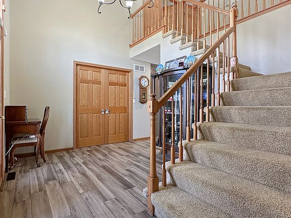 This Modern & Stunning 5+ Bedroom, 4.5 Bath home is located in a quiet, family-friendly neighborhood on the golf course. The home features a spacious floor plan with plenty of room for everyone to spread out. Several bonus features include formal dining/living room, home office or den, central vac on all levels of the main house. The kitchen has been recently renovated with new maple cabinetry, quartz countertops, stainless-steel appliances, coffee bar and an abundance of storage space. Dual master suites - one on main level, one on the 2nd level and both feature walk-in closets, en suite bathrooms and vaulted ceilings. The backyard is perfect for entertaining with a large deck, shaded by awnings, a 24x48 ft patio with basketball court, fire pit and plenty of space to relax and enjoy the outdoors. Finished basement has wet bar, recreation room, and full bathroom. This Remarkable Home is perfect for families or anyone who wants to live in a spacious and updated home. New Roof!