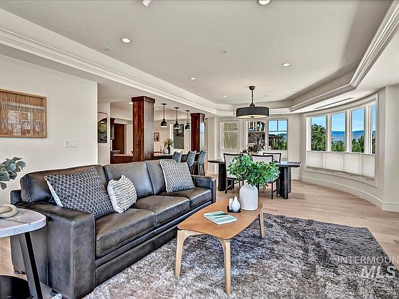 Experience luxurious condominium living on the highly sought-after Crescent Rim Drive. Enjoy unparalleled views from your balcony, perfect for watching the balloon festival and fireworks at Ann Morrison Park. This prime location offers easy access to downtown Boise, stunning parks, the greenbelt, Boise River, BSU, numerous restaurants, and the Boise Airport. The exceptional single-level floor plan features new wood flooring, two private bedroom suites, including a spacious master with a large walk-in closet and private balcony. Additional highlights include a den, 2.5 baths, and ample natural lighting throughout. Secure underground parking includes two spaces and storage. Residents have access to resort-style amenities such as a pool and spa, a private gym, a catering kitchen, and a club room. For guests, three luxurious suites are available for reservation at a nominal rate.