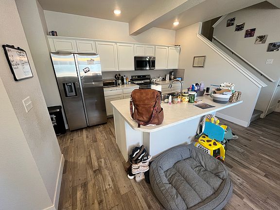 Three bedrooms available in a 3-bed, 2.5-bath townhome in north Loveland. Available for mid June move in date, could be flexible. This is a new build townhome (finished in august 2022). It's just over 1400 sf with great storage, a one car garage, dog door, and small fenced backyard. The backyard is seeded with native grasses and wildflowers and is very low maintenance. The first floor is an open floor plan, with large kitchen island and a walk in pantry. A half bath is also on the first floor, as well as two closets. Upstairs are three bedrooms. The master is approx 13x14 with walk in closet and private bath. The second bedroom is 10x10 with large closet, and the third bedroom is 10x13 with large closet. A second full bath is on the second floor, as well as laundry and linen closet. There is a small front porch and a back patio for relaxing. Views of the foothills and Horsetooth can be seen from the patio. Utility bills vary, but gas ranges from $20-80 per month (higher in winter with furnace) and water/electric/city services ranges from $120-180 (higher in summer with AC). HOA feels covered by landlord. Dogs are allowed as long as they are house trained. Looking for responsible, young professionals or family to rent. While neighborhood construction is ongoing, this is a quiet neighborhood and kind community. Drive time to Fort Collins is about 10-15 minutes. 12 month rental agreement.