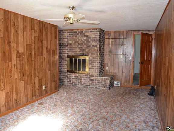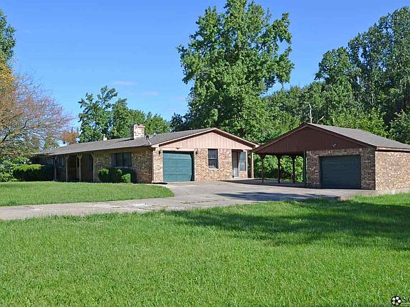 Gorgeous 9.1 acres in peaceful setting south of town. Country living but convenient to town! Partially wooded lot with beautiful landscape, pond, and pole barn. This 4 br 1.5 bath all brick home features 3 fireplaces, a full basement, and is waiting for someone to give it some TLC and make it shine!
