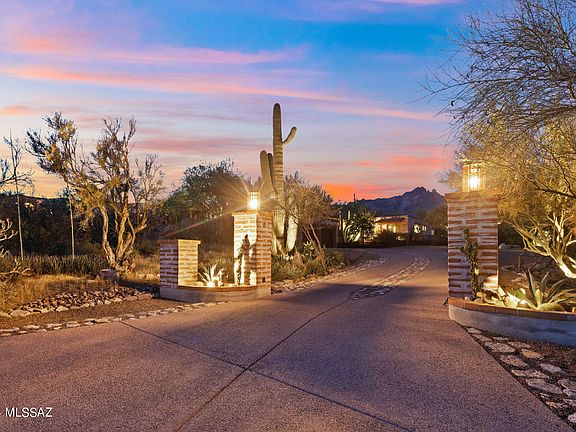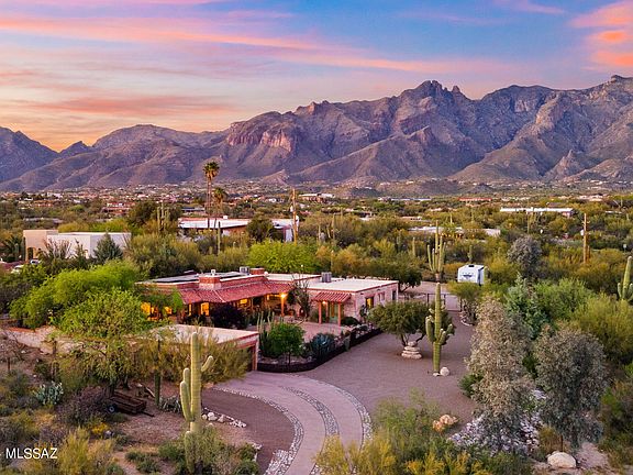 Privacy, serenity, and location embody this classic ''Joesler-esque'' Catalina Foothills adobe retreat. This exquisite single story 2540 SF, 3 BD, 2.5 BTH custom built home is located on a pristine and ultra private 1.45-acre lot, encompassing abundant landscaping and a vast number of trees and vegetation, including mature lemon, orange, kumquat, pomegranate, and grapefruit. This property offers a vast array of possibilities for expansion and future growth. The enclosed front courtyard with fountain is an inviting and warm entrance, setting the tone for the peaceful ambiance that permeates every corner of this home. The rustic interior compliments the stunning natural landscape with large picture windows and custom window coverings. The kitchen features a Viking gas range with a double oven, SubZero refrigerator and freezer, and granite countertops. Travertine stone and tile floors throughout the home create a harmonious blend of luxury and functionality. Step into the outside garden oasis, which exudes charm and relaxation, and is suited for the most sophisticated wedding or special occasion. Two new HVAC systems along with new tankless water heaters bring modern conveniences to this classic home. A private stand-alone office/art studio with AC and electric, provides the perfect location for you to retreat and re-energize. A four-person cedar wood sauna is in the back patio area and will help to relieve the stresses of the day. This beautiful home offers the charm and elegance of the Catalina Foothills, with the close availability of Tucson's most recognized restaurants and shopping.