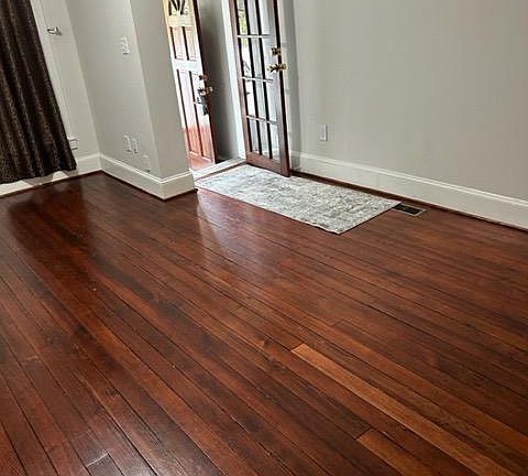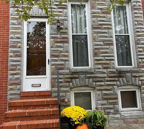 Location, Location, Location. Plus a coveted Parking Pad with easy access via wide alley. Beautiful tree lined block. One block to Boston St and easy access to interstate. Steps to restaurants, bars and Canton Waterfront Park. Inside you are greeted by the old world charm of gleaming original hardwood floors and modern amenities as new quartz countertop and stainless steel appliances. Updated first floor powder room. First floor laundry with stacked washer/dryer (sold AS-IS). Main bedroom has large walk-in closet and gleaming hardwood floors. Second bedroom has sliding glass doors in place for your future deck and new carpeting. Large modern bath with soaking/jetted tub and separate shower.