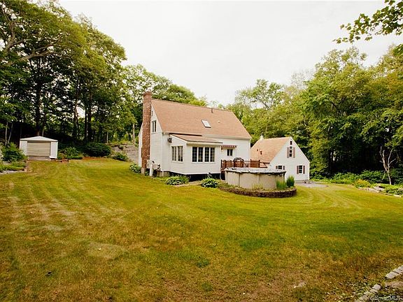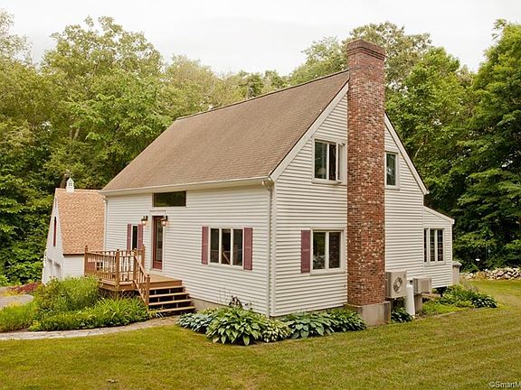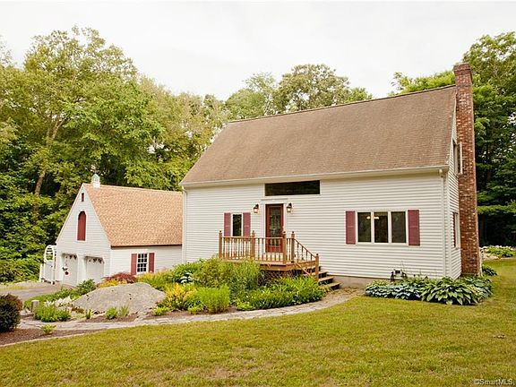Park like grounds surround this beautiful Cape with 2 car garage on lovely setting in Mystic. House sets back from the road with privacy yet close to all area amenities. Featuring a light filled sun room with gas stove and picturesque views of the backyard. Kitchen has stunning cherry cabinets, newer appliances and corian counters. Dining and living area is open with wood stove and gorgeous wood ceiling beams. 1st floor offers a Master bedroom suite. Upstairs has 2 more bedrooms with double closets, full bath and office. Mitsubishi air conditioning units on both floors. Huge bonus space over the 2 car garage for storage and large shed. Play pool in the lower level walk out basement which has a workshop. Enjoy the calming outdoor landscape which offers a deck, pool, stamped concrete patio and waterfall water feature. A wonderful place to call home