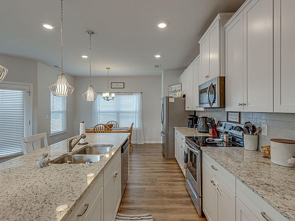 Beautiful Custom Kitchen w/Big Island, Opens to Great Room, Wood Flooring Down, Upgraded Lighting, Covered Front & Back Porch's, Plus Additional Patio for Grilling & Entertaining. Big Master Suite & Bath, Double Vanities & Large Shower. Bonus Loft, (easily converted to 4th Bedroom- Huge Fully Fenced Back Yard, Keyless Entry, LED Garage Lighting
