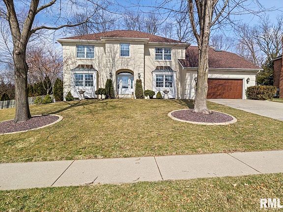 Lux Living in this beautiful timeless all brick masterpiece on Springfield’s West Side. One of a kind Colonial home with impressive design and attention to detail seen throughout. Gorgeous staircase welcomes you when you enter the home. Recently updated kitchen with elegant Quartzite counters, high end appliances, farmhouse sink, breakfast bar and informal dining area. Impressive Family Room with Vaulted Ceilings, Skylights and gas Fireplace. Formal DIning Room with bay windows. Spacious Living Room. Stately Office/Den with Custom Built-ins. Sunroom over looking the inground pool and patio with heated tile floors and automated shades. Massive Primary Suite has a serene bathroom that has a spa like feel with heated floors, oversized jacuzzi tub, separate shower, double sink, dual walk-in closets and a bonus 11.6x12.4 sitting/reading room with built in bookcase. Renovated basement with new carpet installed 2023, recreation room with wet bar, den/office/hobby room with custom built-in, full bath and 2 spacious storage rooms. Backyard has over 40 evergreen trees, wisteria, magnolia trees, garden flowers, bushes that bloom throughout the year and a lanai. Patio has a newer retractable awning to allow for shade or sun. Inground pool has a newer lining 2020, pool pump and DE filter. 220 Electric charging station has been installed for electric vehicles. New Roof 2021 and the exterior of the home has been professionally painted. Don’t miss this must see home.