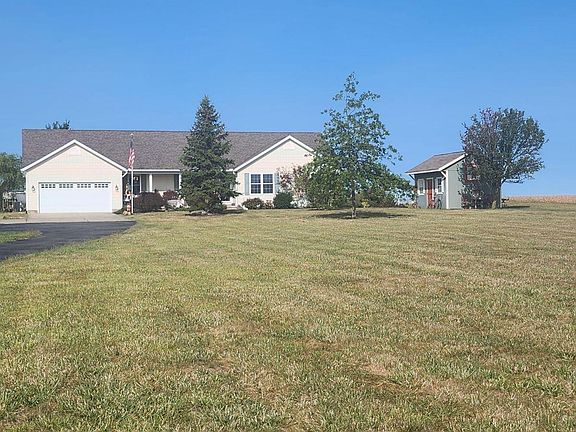 Time to check out his stunning quality built home located on a quiet country road in a great location. This 3 bedroom, 2 bath home offers an open floor plan perfect for entertaining or family time. The kitchen is adorned with hickory cabinetry and recently installed granite countertop. Custom woodwork and solid panel doors add to the beauty of this home. Enjoy your morning coffee from the three season room, rear deck or front porch, the views are lovely. Home sets back off the road and has blacktop drive, 32x24 pole barn at the rear of the property and additional storage shed, partially fenced yard. Updates include: 2021- new furance & a/c, 2020 - insulation,