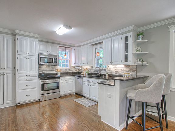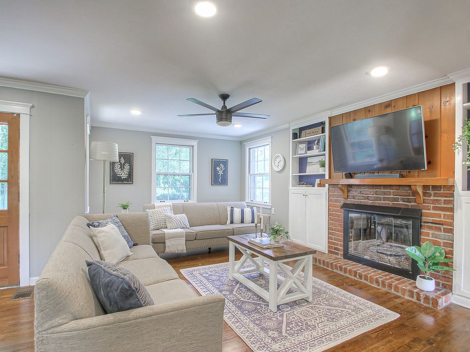 Adorable brick cottage home nestled into a quaint cul de sac lot in Donelson - Just a short drive from the airport & downtown with easy access to the interstates! Step inside this charmingly renovated and spacious 1950s home which boasts a RARE 5 bedrooms and 3 full baths. So much to love about this home ~ Main level features primary living area with a gas fireplace, dining, kitchen, large laundry/pantry, Master suite with a walk-in closet, guest bedroom and 2 full baths. The second level includes 2 additional bedrooms with a kitchenette and extra closets for storage. The fully finished basement offers over 1,000 sqft with a separate entrance - perfect for housing guests or renting as extra income! Property also features spacious 2-car garage with a workshop.