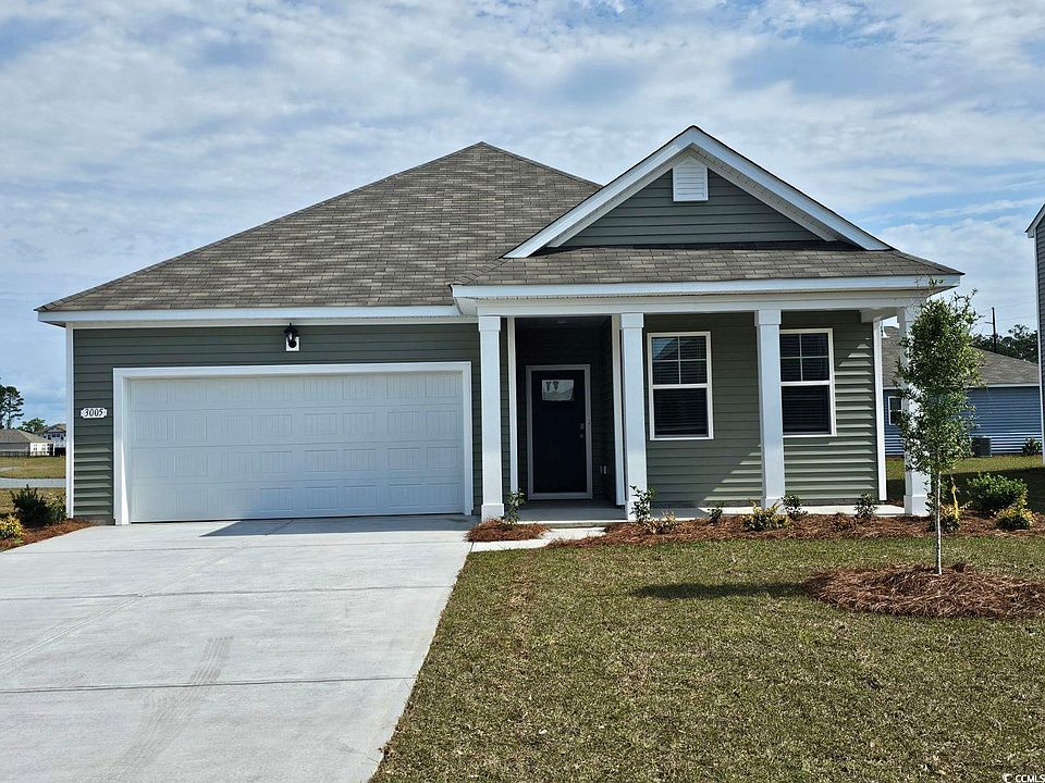 Natural gas community just minutes away from shopping, dining, and the beach. The Aria floor plan is the perfect choice for any stage of life, whether you are buying your first home or downsizing. This home features an open concept living room and kitchen that are great for entertaining along with incredible standard features including 36" cabinetry, stainless Whirlpool appliances, granite in the kitchen, and LVP flooring throughout the main living areas. This home also boasts 9 ft. ceilings, a great sized pantry for storage, a rear covered porch, and a split bedroom design creating a private primary bedroom suite! It gets better- this is America's Smart Home! Control the thermostat, front door light and lock, and video doorbell from your smartphone or with voice commands to Alexa. Tankless gas water heater, two-car garage with garage door opener, and our QuickTie framing system also included. *Photos are of a similar Aria home. (Home and community information, including pricing, included features, terms, availability and amenities, are subject to change prior to sale at any time without notice or obligation. Square footages are approximate. Pictures, photographs, colors, features, and sizes are for illustration purposes only and will vary from the homes as built. Equal housing opportunity builder.)