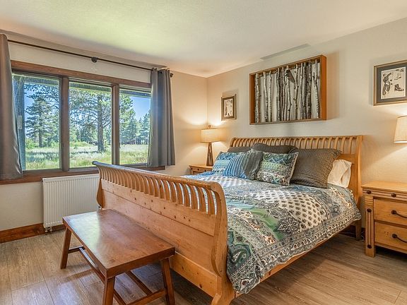Enjoy the beauty and wildlife from this one-of-a-kind Meadow Ridge Condo, offering full unobstructed views of the gorgeous and majestic wild lands that border the complex. This prime location provides super close access to Eagle Lodge and the slopes, as well as bike paths, mountain bike, and nature trails. Nestled in one of the nicest complexes in Mammoth, this condo is surrounded by mature landscaping, shade trees, and plenty of open space. Shared amenities include a pool, hot tub spa, sauna, and tennis/pickleball court. With its proximity to the resort and year-round amenities, this unit boasts the highest rental income potential. Check back soon for additional photos and info. This condo features three full bedrooms and three full baths. The upgraded Hydronic heating ensures consistent, safe, and silent warmth throughout the unit, including towel warmers in the bathrooms. The modern kitchen is appointed with stainless steel appliances, new cabinets, and granite countertops. Every window offers scenic views of the natural environment. The sunny deck is perfect for relaxing evenings and dining. Additionally, the unit includes full laundry and linen storage facilities, as well as extra owner storage. There is also an external attached shed large enough to store a ton of sports equipment. Experience the perfect blend of comfort, convenience, and natural beauty at this exceptional Eagle Lodge area Condo.