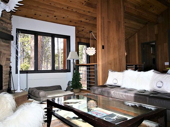 A blending of Modern European and Mountain Chic designed with the serenity of a natural setting in the Meadow. Spacious 2 Bedroom with a "storage loft" and 3 full bathrooms. Completely remodeled Townhome featuring wood floors in the living area, slate floors in the downstairs entry, carpet in the bedrooms. Natural wood burning fireplace with an artistic masonry. Large open deck, views, private entrance, wood dual pane windows, stainless steel appliances with a propane stove/oven, butcher block counter tops, modern light fixtures, FAU heating, washer and dryer, extra storage and a bonus private shed for you to store your summer and winter toys. The complex has a tennis court, pool, spa, on site management and great nightly rental potential. Walking distance to the Sierra Star Golf course and Eagle Lodge.