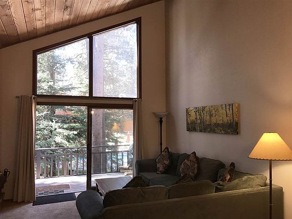 MeadowRidge is situated in a great location with close proximity to the Little Eagle Lodge ski access and Sierra Star Golf Course plus provides a wooded more secluded feel with beautiful grounds. Townhouse style 2-Bedroom with vaulted wood ceilings, large south facing windows off the living area and south facing deck plus close to the common area pool, hot tub and tennis courts. Private entry to your unit with no common hallways and parking just outside your front door. Great for both summer and winter rentals with shuttle service close to the entry of the complex makes for easy access to town restaurants and shopping.