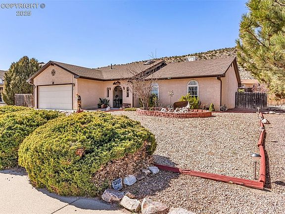 This well-kept 3-bedroom, 2-bathroom home in Cañon City offers the perfect blend of comfort, convenience, and outdoor relaxation. Ideally located near Skyline Drive, you'll have easy access to scenic hiking trails while still being close to town amenities. Inside, the home is filled with natural light, thanks to skylights and Anderson windows, creating a warm and inviting atmosphere. A new swamp cooler and furnace ensures comfort throughout the year, while a water filtration and softener system provides high-quality water throughout the home. The beautiful xeriscaped yard offers low-maintenance landscaping, and the fully fenced backyard is perfect for pets. Spend most of the year relaxing on the covered patio, a great space for outdoor entertaining or simply unwinding in the fresh air. For added security and convenience, solar motion lights are installed around the home. This charming property is move-in ready and waiting for you to call it home. Don't miss this opportunity—schedule your showing today!
