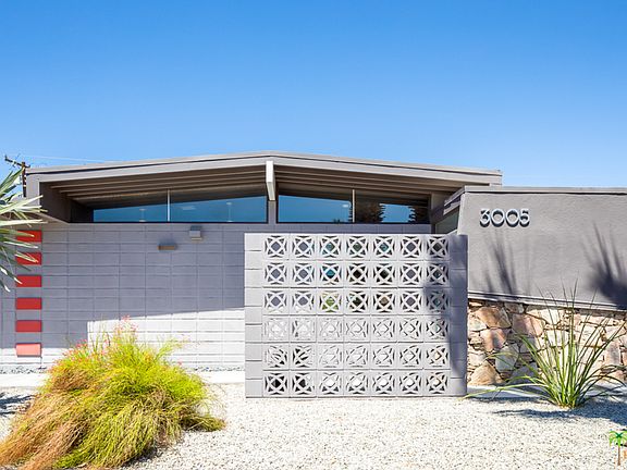 Welcome to Palm Springs and this architecturally significant dream home. Designed by world famous architect Hugh Kaptur, this oasis has been remarkably remodeled and respectfully adorned with modern comforts and timeless finishes. A stylish entertainer's delight: spacious open concept chef's kitchen (with stainless steel appliances, designer tile backsplash, and tons of storage) which flows to the hip living room and dining area. Enjoy the sweeping mountain views and dine or relax in the covered lounge/patio (wired for outdoor TV) or float in your sparkling custom pool year-round with a cool-pump for summer and solar gas/heater for winter. Fresh porcelain tile flooring throughout, custom window treatments, closet organizers in every bedroom, laundry room with folding area and yes more storage, tankless water heater, newer high efficiency HVAC and OWNED SOLAR are just some of amenities in this mid century modern dream home. FEE Land (you own it) and No HOA... LIVE YOUR DREAM