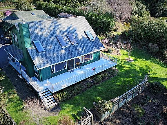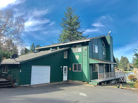 Location is everything at the coast! This lakefront home features private boat dock access with 100+ feet of lake frontage. High vaulted ceilings, beautiful cedar throughout, granite counters, wood stove, huge lake view deck, guest studio, garage and a huge 36x36 shop for your toys, hobbies. Private setting -gated entrance.