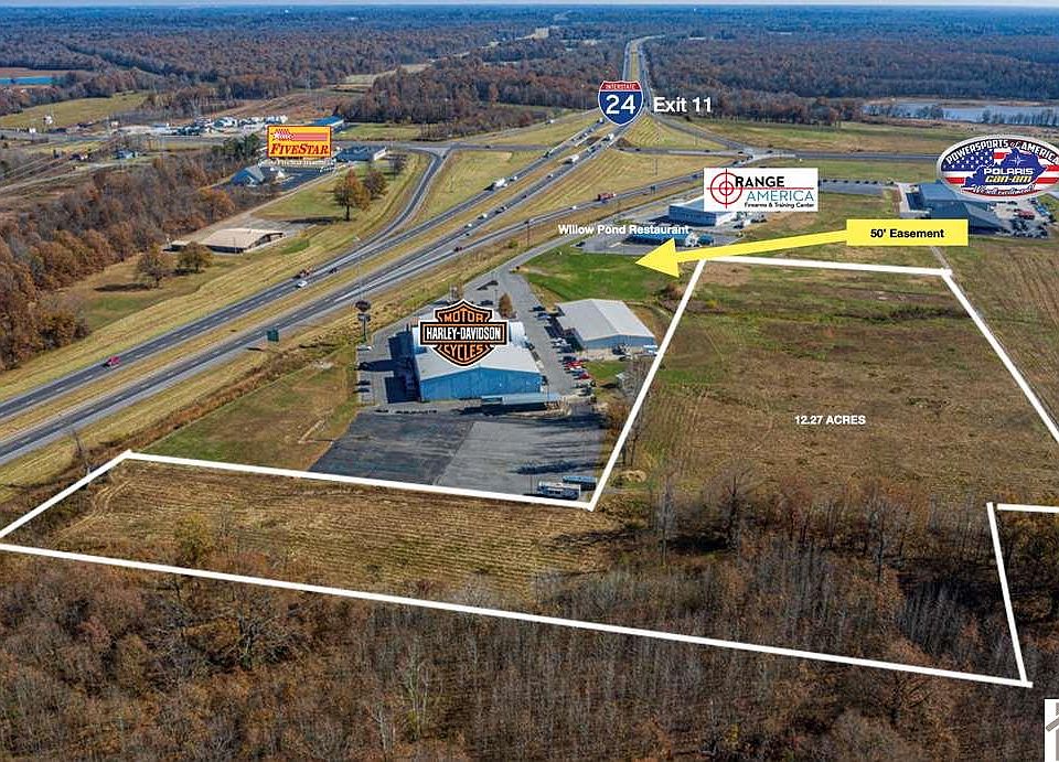Commerical land - 12.27 ACRES FOR SALE off Exit 11 with 215' of Interstate-24 road frontage. This property includes a 50' ingress/egress easement located just before the Harley Davidson parking lot and the property loops around the dealership. Aggressively priced at under $35K per acre. Zoned ML Light Industrial to allow for a multitude of commercial or industrial uses surrounded by commercial business including, Range America, Harley Davidson, Willow Pond Restaurant, Powersports of America and more! Located outside of the city limits serviced by JPEC. MOTIVATED SELLERS - BRING AN OFFER!