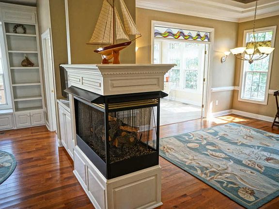 Exceptional home with Upscale Design Features like; soaring ceilings in living, 3-sided fireplace, unique tray ceiling & accent lighting in the spacious dining room, 9' painted ceilings. and Gorgeous Hardwood Floors. Kitchen is wonderful with granite tops and beautiful backsplash. The Master Suite has a large walk- in closet & en suite with dual vanities, jetted tub and shower. 3rd BR could be used as a home office. The list price includes an free lot beside the house that has a tax value of $40,000. The Carolina Room is bright & spacious. Walk out to a 31'x12' deck and a small pet fence off the deck. The Finished Room over the garage has a full bathroom, built-in bookcases, & skylights. Brick with vinyl trim & Windows. Low cost HOA yard maintenance-only $75 a month includes extra lot.