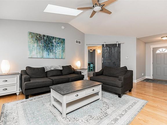 Check out this Show Stopper!! Showing like a model home, this open concept ranch has split bedroom set up with master wing behind kitchen and additional beds/bath on other side of home, perfect for privacy. Vaulted ceiling w/ skylight and amazing natural light make entry welcoming for all. Beautiful finishes with hardwood floors, granite countertops and stainless steel appliances, white washed brick fireplace and so much more. Efficient and functional drop zone of garage w/ laundry and lockers. Master has tray ceiling, custom shelving in walk-in closet, dual vanity and custom tiled shower. Lower level perfect for both recreation and relaxation. Plenty of space for gaming, playing or just lounging on the comfy sofa and watching movies. Lower level also hosts bedroom, bathroom, mechanical room and storage room. W spring around the corner, enjoy quiet time or entertaining in the backyard deck or patio w/ fenced yard