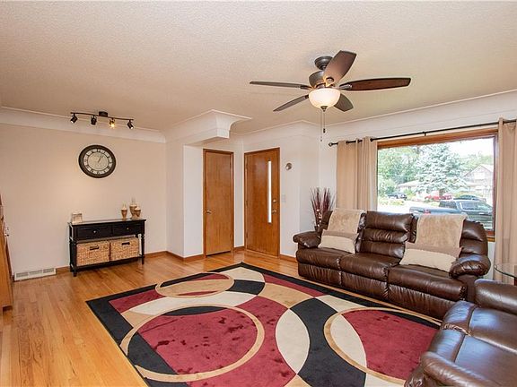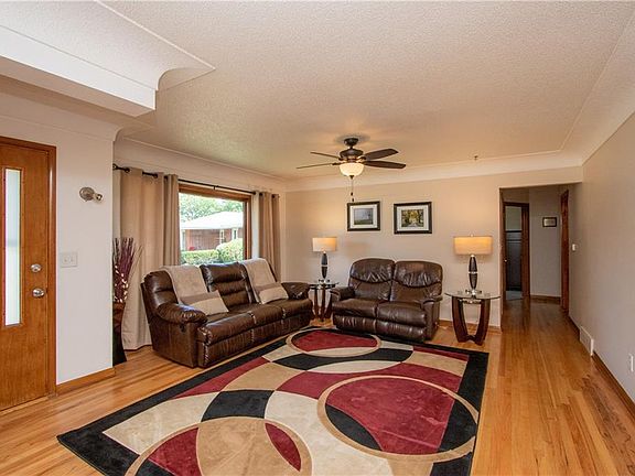 Spacious and updated ranch home on cul de sac in NE Des Moines. Beautiful hardwood floors and vintage built in dry bar greet you in the front family room. Eat in kitchen has new quartz countertops, bar seating and built in bench for dining table. Second family room with stone fireplace framed with tall windows and built in shelves, slider with access to large back deck. 3 bedrooms and 1 full bathroom. Finished lower level has 3 large non conforming bedrooms, 1 & 3/4 bathrooms, laundry and tons of storage space. New carpet being installed throughout. Outside is a 2 car detached garage and off street parking. Close to Goodrell Middle school and Bright Grandview Golf Course. Certified Pre-Owned Home - this home has been pre-inspected and comes with a 13 Mo HWA Platinum Home Warranty included.