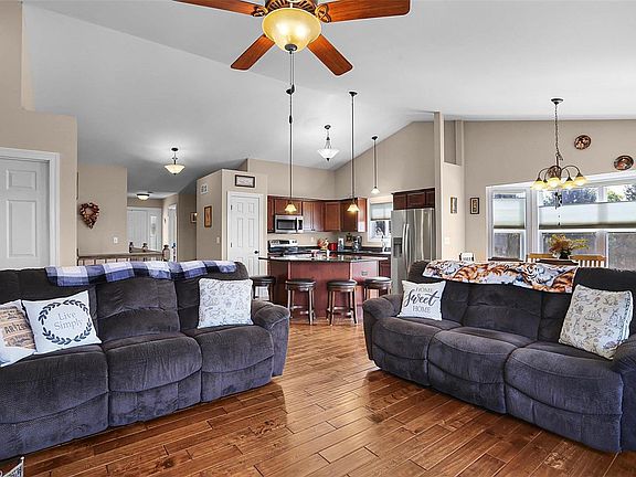 Condo Living in Stone Crest Subdivision! Take a look at this very well cared for unit that offers gorgeous machine scraped hardwood floors, vaulted ceilings, cherry stained cabinets with crown molding and granite tops, stainless steel appliances, and magnificent bay window in the breakfast area. Master suite offers his/her closets, double vanity, separate shower, and sit-down jetted tub with sprayer. You'll love the small custom desk area coming in from the garage! Open staircase to the walk-out lower level which offers an additional family room, bedroom, and full bathroom. Don't forget to enjoy your favorite drink of choice on your covered deck! Zero step entry from the garage and front door! This property comes with lake access. All within walking distance to shopping, tennis courts, pickleball, park, and a walking trail! Location: End Unit
