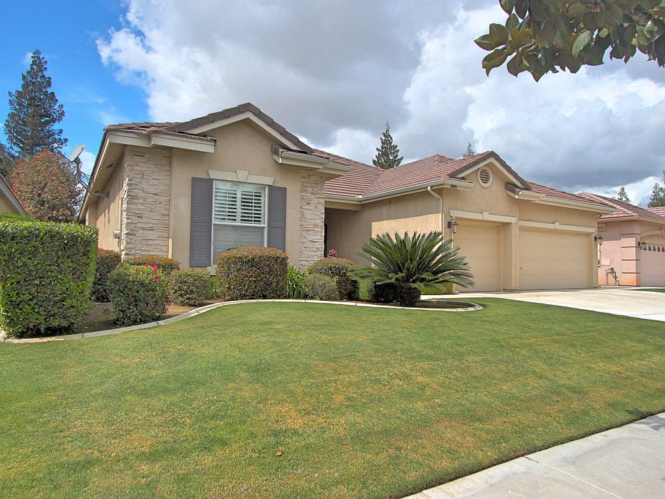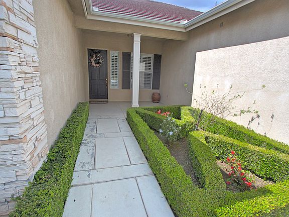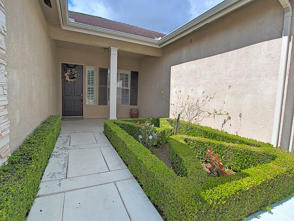 Gorgeous unique home in the gated community of The Greens. 55+ community. This split wing home has had over $75K in updating that features granite in kitchen and bathrooms, classic white painted cabinets, LG stainless steel appliances including 5 burner gas range, 8 ft. exterior and bedroom doors accent the high ceilings and crown molding in all rooms, LED lighting show off the wood look porcelain tile flooring in areas but bedrooms. If you need storage space and lots of cabinets this home has it. Incredible master closet with custom shelving but this home has even more goodies such as a powder bathroom for your guests, shutters throughout, 3 car garage, large covered patio overlooking the serene rear yard & bock wall surround. Club house and swimming pools, putting green + Gym within walking distance.