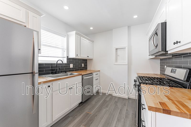 Upstairs unit in Mapleton Fall-Creek that has been gutted to the studs and remodeled with high end tile work, soft close kitchen cabinetry and laundry units installed. Walking distance to Command Coffee and a close drive or bike downtown or to BroadRipple. Short walk off the Fall Creek Trail. There are 2 off street parking spots available. Renter responsible for all utilities except water. $75/mo to be included in addition to rent to cover water/sewer/trash. Tenant responsible for mowing. No Smoking. Pets: $250/ea refundable deposit, then $25/mo. Pre-qualify: No evictions or open bankruptcies on credit report, 600 or better credit score, no felonies, and must gross at least 3x rent.