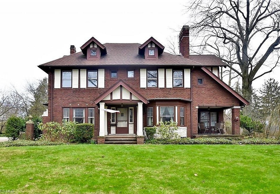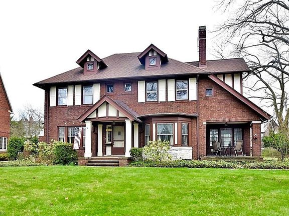 Spacious brick colonial in the highly sought after club section of Shaker Heights. This 5 Bedroom, 3 full and 2 half bath home has an abundance of architectural detail and character. Lovely foyer and staircase as you enter the home. Bright living room with bay window, hardwood floors, crown molding, and 1 of 4 fireplaces in the home. Large formal dining room with detailed accent molding. Updated cherry kitchen with granite countertops, stainless appliances, and modern backsplash. Lovely sun room with fireplace and french doors that lead to a hard-to-find covered front porch. First floor mud room with built-in storage. Master bedroom with adjacent private office with built-ins and an en-suite bath. 2 additional bedrooms and an updated full bath on second. Third floor has 2 bedrooms and a full bath with large walk-in closet and extra storage. Finished lower level rec room with fireplace is huge and ready for entertaining. Additional areas in lower level for workout, laundry, workshop, and storage. Large backyard with paver patio. Close to hospitals, downtown, schools, restaurants, parks, and cultural center.