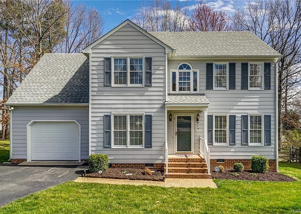 Welcome home to this lovely 2 story, 4 bedroom transitional beauty. Your next home features natural lighting and crown molding throughout. The formal sitting room features glass paneled French doors leading to the living room with cozy gas fireplace. Plenty of counter space in this fully renovated kitchen featuring granite countertops with tile backsplash, double sink with window view, stainless steel GE French door refrigerator, KitchenAid stove and dishwasher. Enjoy the partially wooded views every morning in the bright breakfast nook neighboring the kitchen. Escape to the master bedroom featuring a walk-in closet and a renovated en suite bathroom with soaking tub, double sink vanity and expanded tiled standing shower. Your home has upgraded lighting and cabinetry throughout as well as an oversized 15 foot garage. Enjoy the spacious backyard and the new composite double level deck, perfect for summertime entertaining. Located conveniently near Short Pump Crossing Shopping Center and I-64.