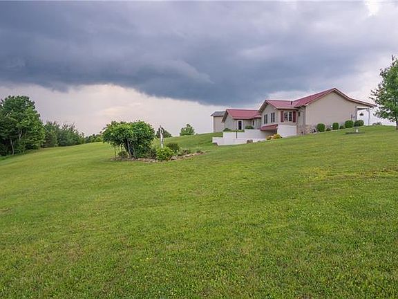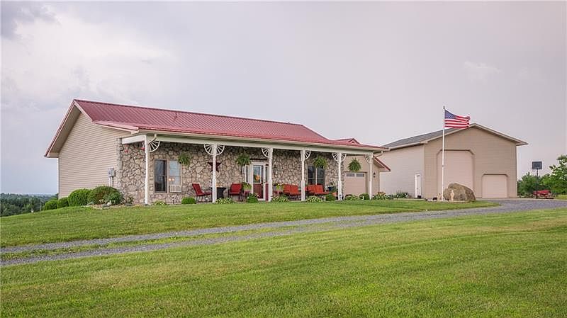 Experience home at this custom built, 19 year old ranch with a long driveway to your own private retreat on 17.77 acres! Set well back from 308 with country views from every window with no close neighbors. Bring the horses! There is plenty of room for them! The house and attached garage have a brand new steel roof. The house has an open design with expansive windows to showcase the scenery, vaulted 12 ft ceilings and hardwood floors. The country front porch with stone front will provide a good view of sunsets and weather watching! 3 large bedrooms, 3 full baths, laundry on main level, full finished basement has a kitchen area and walks out to a hidden patio area perfect for a hot tub. Meticulously maintained home inside and out with gorgeous landscaping, perennials with 2 garages, plus a double sized shed. Mostly level acreage great for a pasture for horses to roam or quad riding with over 5 acres of wooded acreage for hunting. OGM rights convey and no active lease.