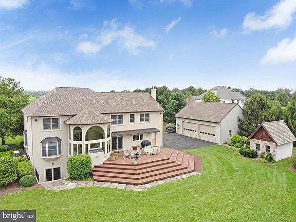 Incredible home~Incredible setting ~ 2 picturesque acres ~ So many amenities to enjoy! 3005 Walton is such a special home. Meticulous, immaculate, and truly one of a kind. Built by Betz, totally custom, features include a 2 story foyer with center stair, handsome dining room, spacious living room with connected den/office, and the gorgeous kitchen with custom cherry cabinetry open to the grand family room with 2 story ceilings, fireplace, and views that will be enjoyed endlessly! This home is filled with so much natural light and offers a very uplifting feel from the moment you enter. Upstairs is laid out perfectly ~ master bedroom complete with a sitting room featuring fireplace and full luxurious bath ~ a princess suite with full bath ~and 2 additional bedrooms w a jack-jill bath to share. Each bedroom is large and carpeted with neutral colors ready for you. The basement is amazing as well, fully finished and a walk out level complete with a wet bar, a great room with fireplace, a huge cedar closet, and spotless mechanicals including a whole house generator, septic alarm, and everything you need in A+ condition. The yard is simply breathtaking. flat and level allows for any use you can imagine. The large 25X20 deck off the main level and natural stone fire pit are just waiting for you to enjoy the days and evenings with your loved ones with wide steps that lead to the driveway where you find more! Hold your cherished or toy cars/boat in the temperature controlled 4 bay detached garage with lift in one bay. The second bay is large enough for a boat or RV to be parked! There is also a full bath in this garage to keep from bringing any dirt into the house. Last but not least is this adorable and functional custom built shed, plumbed for water. Great as a potting shed, she-shed or man cave. The possibilities are endless. Additional features you can not see include ~ radiant heated floors, heating zoned for each room including both garages, dual zone central air units, a whole house generator, water softener, central vacuum system, and many custom upgrades throughout. Now is your rare opportunity to own this one of a kind property in the Central Bucks School District which is also surrounded by protected farms but also just minutes to shopping, restaurants and easy access to commuter routes to Philadelphia, NJ and NYC.