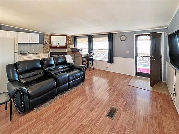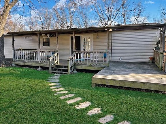 Peaceful lake community is calling a new homeowner! This manufactured home has been recently renovated to accommodate two families living under one roof. The floor plan features a Non-weight bearing wall that separates the open living, kitchen, and dining area. This interior wall can be removed easily and restored to it's original open floor plan or leave as it is and have more of an individualized floor plan. This home contains well-proportioned rooms. The kitchen includes the refridgerator and range/oven. The living room features a wood-burning fireplace, wet bar area, and vaulted ceilings. The comfortably sized master bedroom includes a spacious bathroom and a large closet space. There are two other bedrooms and a second bathroom. The laundry room is off the kitchen with a separate exterior entry. You'll love the full length covered deck on the front of the home and another covered deck off the back of the home. There is a large yard with partially fenced area to keep your pets safe and close to the house. You'll enjoy additional storage with a portable storage shed that has electricity. The shaded backyard will help keep you cool in the summer months. There is a detached metal storage building. The lot also features an RV parking area with Electric hook up and a second septic tank. There is a Rocket Connect internet tower very close by so you can have excellent internet service! There is also a firepit area! This property has lots of space for gatherings and outdoor entertaining. Look no more. You've found excellent Lake of the Ozarks community living. Conveniently set in KC Colony subdivision, it is close to the community church. A short drive to the lake, and with paid HOA fees of $40 per yr., you'll have use of the community boat ramp and dock. This is a quiet, secluded area that can be yours! Schedule your private tour today.
