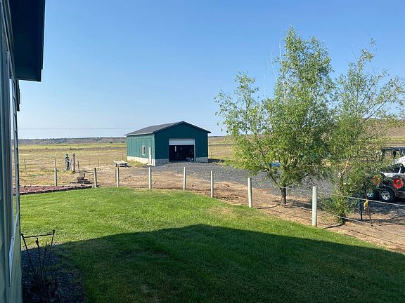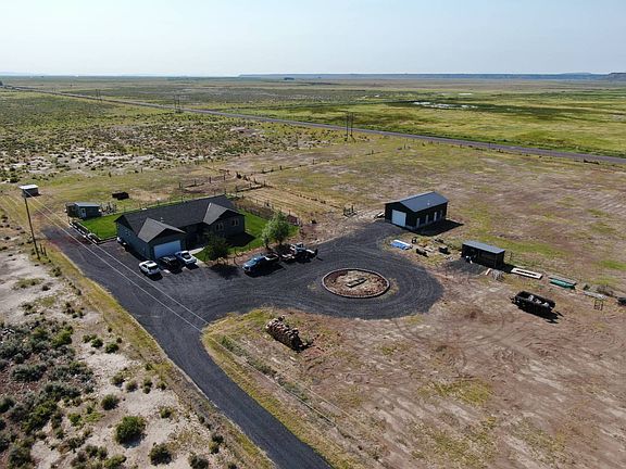 Custom built home just outside of town. One level home with a panoramic view Kitchen has tile flooring, breakfast bar, pantry and lots of cupboards and counter space. Formal dining area plus a dining area off the kitchen with a door that leads to the patio area. Family room has a propane fireplace for comfort and enjoyment. Home has been freshly painted on the outside. 24x40 shop has concrete floors and is fully insulated with 10 ft. garage door plus office area. There is a 2 bay covered storage building, fenced garden area, chicken coop, under ground sprinklers, nicely landscaped, round-a-bout driveway, and lots of extra parking space. Septic was pumped June of 2021. Acreage is fenced and cross fenced. This home is only a couple of miles from the city limits of Hines. Perfect for country living with the convenience of work and shopping close.