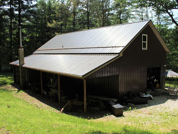 2 bed/2 bath home on 1.85 acres, located on route 36. This home is filled with custom cabinetry and rustic finishes, sourced from the property. Hickory counter tops, vaulted pine ceilings, and sturdy hand-crafted doors. First floor bath features a gorgeous tile shower, tile flooring and quartz vanity top. Convenient first floor laundry. 2 car garage with tool bench and storage area provides ample space for your vehicle and storage needs. All kitchen and utility appliances convey with the sale of home. Check out this charming home in a tranquil and secluded setting!