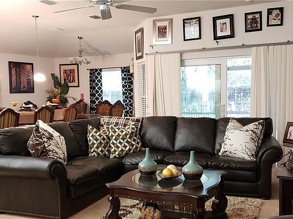 - Interior Features: Ceiling Fans(s), High Ceiling(s), Master Bedroom Downstairs, Split Bedroom, Vaulted Ceiling(s), Walk-In Closet(s), Window Treatments, Open Floorplan, Solid Wood Cabinets, Eating Space In Kitchen, Kitchen/Family Room Combo, Thermostat