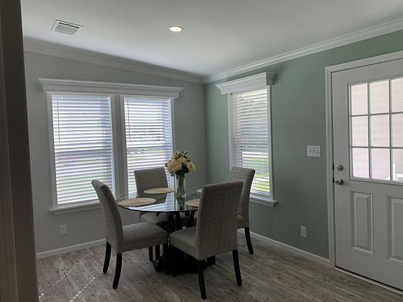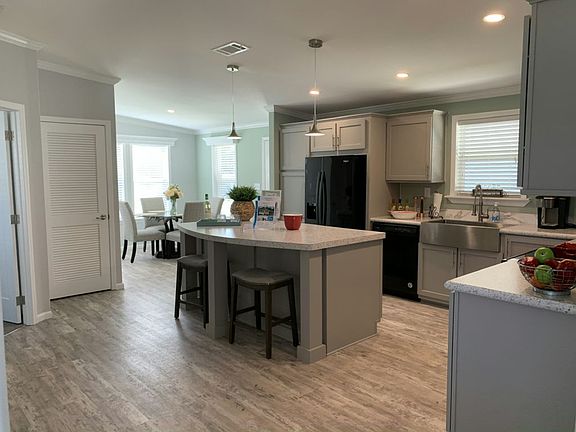 55+ age qualified community. This 3 BED/2 BATH model has so many must-have features. It's brilliantly designed with a partially open floor plan creating a great flow throughout the entire home. For ultimate privacy, the master bedroom is located away from the other bedrooms just off the kitchen and features beautiful French doors an en suite bathroom. Double sinks in the master bath makes it spacious and easy to use with another person. Enjoy the eat-in dining area next to the kitchen. The kitchen features a long bar countertop, perfect for bar stools to add extra seating. The two other bedrooms are located just off the living room, with an bathroom between. There is space and hook-ups for a washer and dryer and you can easily access the carport off the dining and kitchen area. This floor plan is becoming very popular and it can be all yours. Call us today to schedule a private tour and let us help you get started making memories that will last a lifetime.