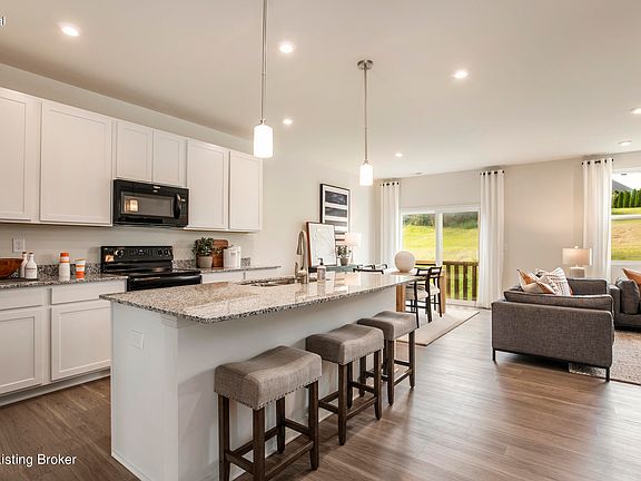 Hurry!! Last Hampton that can close 2024!! You will love the inviting front porch as you pull up to the house. The home has a spacious flex room or home office as you walk-in with plenty of natural sunlight. The open kitchen has stainless appliances, white shaker style cabinets, large walk-in pantry, and a gleaming granite island with undermount sink. The kitchen over looks the gathering room and has over sized windows, and tucked behind the gathering room is a large flex room and half bath. The upstairs has an enormous loft that can be a game room or the perfect space for entertaining. The owners suite will fit large furniture and you will love the double sinks and walk-in shower. The other bedrooms are all generous in size with lots of closet space. This home will not last! Located in Oldham County School District.