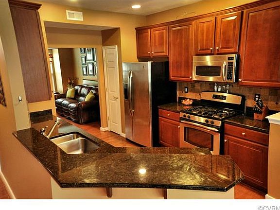 Stunning town home looks like a model home very tastefully decorated, all you have to do is move in! Upgrades galore, tray ceiling in the formal dining room and master bedroom, 42" cabinets, granite counter tops and tile backs splash, hardwood floors throughout the first floor, crown molding on 1st and 2nd floor, $22,000 additional investment by the owner into windows for sound proofing and energy efficiency resulting in LOW electric and gas bills. All upgraded lighting fixtures & ceiling fans, huge master bedroom w/walk in closet & luxurious tiled bath and custom window treatments that will convey with the property. Did I mention this is an end unit & also features a 2 car garage! Home is located with easy access to the interstate and minutes away from Short Pump excellent dining and shopping opportunities. This blows away it's competition, you will definitely want to make sure this is on the list of homes to see.