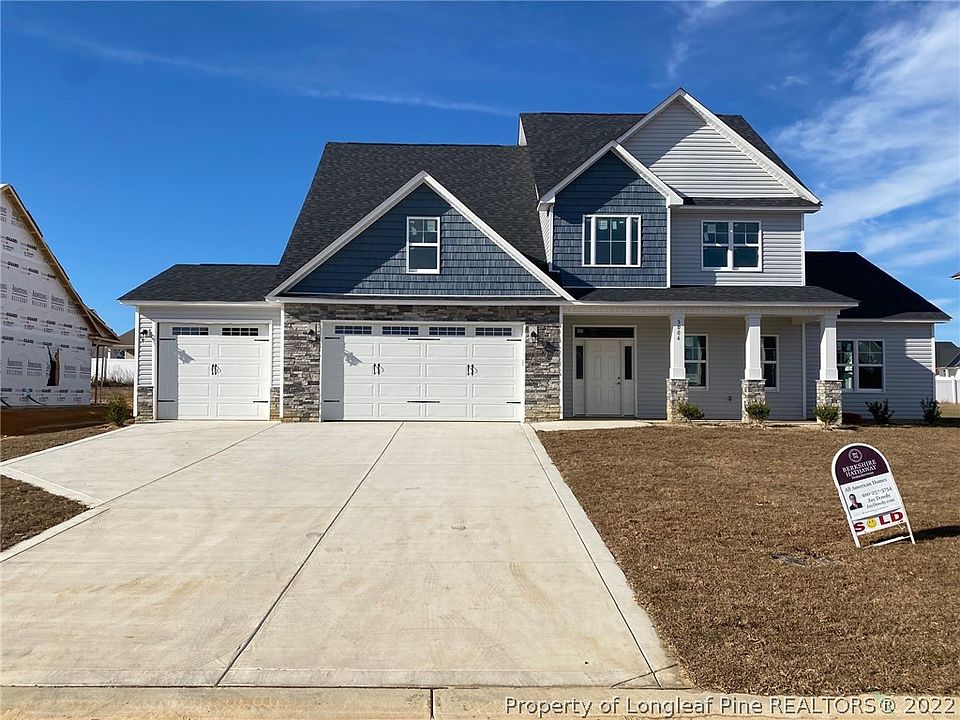 Georgetown Estates-Stone & Vinyl 2 Story with 5 Bedrooms, 3.5 Bath, Covered Front Porch, Two Story Foyer, Formal Dining Room, Kitchen with Breakfast Area, Pantry & Bar Seating, Great Room with Corner Electric Fireplace, Master Downstairs with 2 Large Walk in Closets, Dual Vanity, Garden Tub & Separate Shower, 3 Car Garage, 4 Guest Bedrooms Up, in addition to a Finished Bonus Room & Attic Storage Space. Jack Britt Schools. "Built Strong by Armstrong"