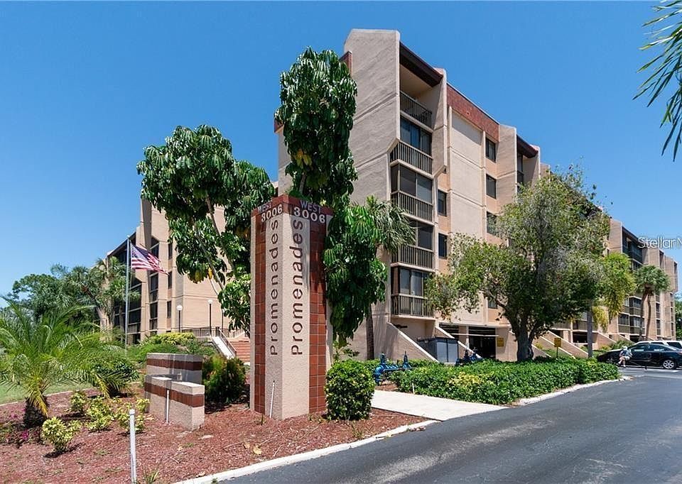 In the Heart of Port Charlotte. Promenades West offers a spacious 1 bedroom 1 bathroom furnished condo on the 3rd floor. There is an elevator, and stairway with security. There is a large community heated pool, clubhouse, pickleball and tennis court and more. Close to shopping, restaurants, schools and hospitals and a short ride to beaches and golf. Don't forget about world-class fishing and boating.