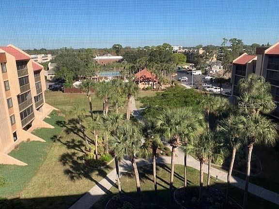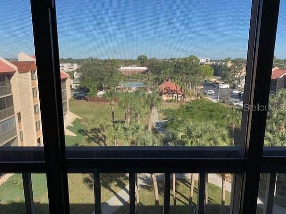 Awesome courtyard view from the 6th floor balcony! Beautiful complex close to all amenities, shopping, hospitals, Cultural Center, Library. Super clean condo that has been updated, newer kitchen and bathrooms, beautifully furnished, almost new sleeper sofa that has never been slept on. Hot water tank recently replaced per owner. Kitchen features solid surface counters, wood cabinets and even an appliance caddy! Dining area 2 walls of mirrors. Turn Key, just bring your toothbrush and clothes. Elevator access! Assigned parking in the garage! Full size washer and dryer in condo .Secured access to building. Amenities include: Large heated pool and sunning area, Club House, Shuffleboard Courts, Pickleball court and even Corn Hole! No Pets and you do not have to be 55+. Parking under the building, not outside, near the elevator.