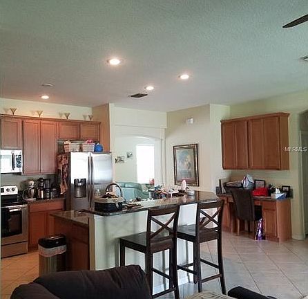 This 2006 built 3 bedroom 2 bathroom 2 car garage boasts 2000 square feet under a/c. This home was renovated in late 2012 and has newer a/c, all stainless steal appliances including microwave, dishwasher, oven, refrigerator, washer, and dryer. 18 inch tile flows throughout on a diagonal, with carpet in the bedrooms. 42 inch upper cabinets and granite counter tops finish the kitchen. This home has a formal living room, dining room, laundry room, and a huge family room with an open kitchen. The kitchen includes a large pantry, breakfast bar, and eat in nook. This home sits on an oversized corner lot , with an oversized screened in lanai and, a huge yard that is fenced in with a 6 foot tall privacy fence. Award winning Toledo Blade elementary is close as well as shopping, restaurants and interstate access. Lawn maintenance and water is included. Will consider pets.