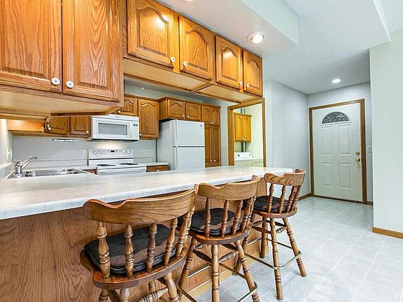 MAIN FLOOR END UNIT CONDO! Very convenient location on the west-end. 2 bedroom, (possible 3rd in unfinished lower level, existing conforming window) 1 1/2 baths, all appliances including the washer and dryer, screened porch. small garden, green space to the left of the unit with extra parking space. Lots of storage, 2 car garage. $2,500 flooring allowance. $202,500