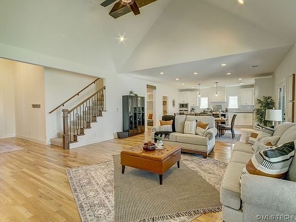 The stunning Ruby Plan! Oversized covered back patio (40' x 12') featuring an outdoor fireplace. Top-notch construction, ensures high-quality living. Floorplan smartly maximizes your living space. Lovely hardwood flooring throughout downstairs living areas. Plush carpeting in the bedrooms. Owner's suite, plus 1 bedroom downstairs (could be office). 3 more bedrooms and a bonus/game room upstairs. Owner's bath has double vanities, full tile shower and free standing soaking tub, plus a walk in closet with seasonal storage. Located within the prestigious Bixby School system. Presley Heights offers a range of recreational amenities. Enjoy leisurely moments by the stocked fishing pond or take a stroll along the scenic walking trails. Dedicated community park and playground area. Ready for move-in! One year home warranty offered by the builder with 24/7 access for emergency phone calls.