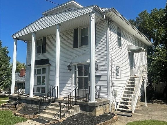 If you are looking for space this grand two story on the edge of Springfield has it! Nearly two thousand square feet of living space awaits you on East High Street! The stately front porch and impressive columns welcome you into the sprawling entrance. Each room of this home is flooded with light from the numerous windows. The down stairs boast wood beams in every room. The living room has new carpet and a wood burning stove. The Dining room is large enough to host your family and friends. A spacious kitchen is adjacent to the dining room and a bright bedroom and full bath round out the first floor. The second floor is home to three large bedrooms and a HUGE bathroom that is ready for your personal touch. An unfinished walk up attic is a blank canvas for whatever you envision, a rec room, master bedroom or a play area for the kids. At the rear of the home sits a spacious and fully fenced back yard, a storage shed and a generously sized deck off the kitchen. Prior to 1960 this home was a duplex and could easily be converted back to multi family living if that is what suits you. A new roof was put on in 2021, brand new HVAC system in 2022. Room sizes are approximate, buyers to rely on their own measurements. Wood burning stove is not warranted. Home is being sold AS-IS.