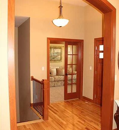 Wake up to a better way of life in this outstanding 4 bedroom, 3 1/2 bath, walk-out ranch style home with wooded views in the heart of a wonderful subdivision. Quality constructed, gracious open floor plan, volume ceilings, gourmet kitchen, granite breakfast island, cherry cabinets, central vac, wood flooring, stainless steel appliances & hearth room with double sided fireplace that doubles with the dramatic great room with built-ins & archways. Luxurious master suite with double door entry, whirlpool & tiled shower & flooring. Fantastic screened porch to enjoy park-like setting backyard. Main floor laundry & main floor vaulted den. Lower level family/rec room with 12ft ceilings, wet bar with tile flooring, 3 bedrooms & bath. Surround sound, 3 panel solid doors, Trex deck, oversized 3 car attached garage & MANY sought after amenities in the 4094 finished sq ft this fine home offers.
