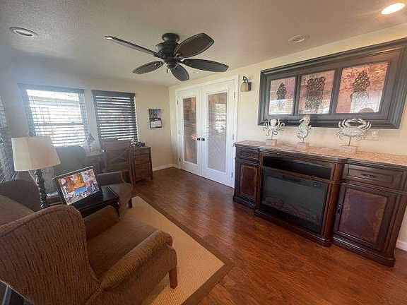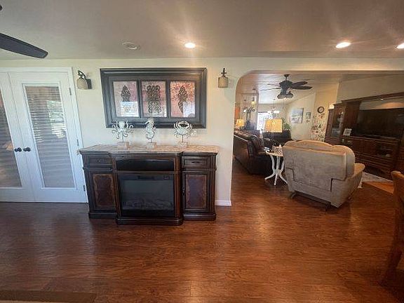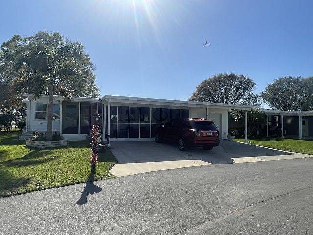 Originally a nice three-bedroom/two-bath home, this home has been redesigned, expanded, upgraded, and infused with WOW factors everywhere!You will be immediately greeted by a screened-in area that can be utilized as a place to enjoy the outdoors without the dreaded mosquitoes, or opened up for extra parking space. From the rounded steps and custom-made railings with a glass front door, you step into the dining room with an impressive 20' archway that frames the rest of the main living area. The all-new kitchen sports brick countertops, new cabinetry, new appliances,a wall pantry that includes a wine rack, and aunique "coffee station" with a granite countertop. From the kitchen, you will zigzag into an inspiring laundry room with plenty of room for storage, freezers, extra refrigerator, and more! The impressivemaster bath tile shower is calling your name after a hard day on the golf course, and you'll find unique features for toiletries and storage, too! Behind mirrored doors, in the den, you will be delighted to find an extra walk-in closet space! New a/c in 2020 and new roof in 2022.The size of the shed has been doubled to hold two golf carts plus whatever else you would like to keep in your shed! All the view you need is on the inside of this uniquely gorgeous home! Home is being sold "TURNKEY" and the purchase includes golf cart (pictured) plus ONE-YEAR FREE GOLF!