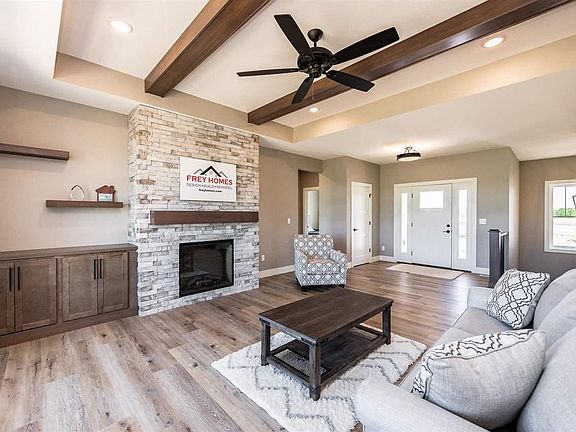 Dont miss this showstopper by Frey Homes! Natural light cascades through this home from the picture and transom windows as well as the large sliding glass doors off the 16x12 covered deck. So much attention to detail, from the gorgeous wood beams in the living rooms tray ceiling, to the custom built lockers in the laundry, elegant tile shower in the primary bedroom with bench, window and pull out sprayer, to the great coffee bar area in kitchen. If 5 bedrooms isnt enough there is an additional office/exercise room! Triple sill plate adds bonus height to the already bright and open basement. You saw correctly, 5 stall attached garage! Behind the scenes upgrades were not overlooked, this is a Hi-Performance home with extra emphasis on energy performance. Energy star hybrid electric water heater, fresh air ventilation with the premium indoor air package. All of this situated on a .45 acre lot, on a cul-de-sac street! Dont miss out on this custom work by Frey Homes!