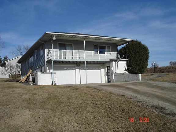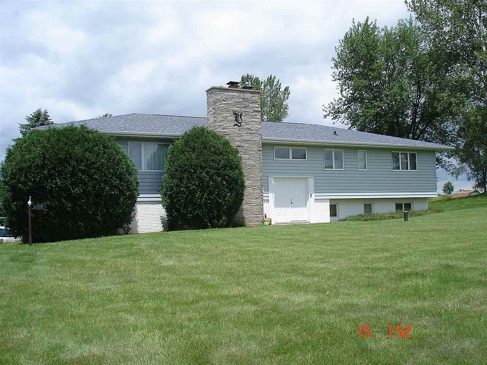 ONE owner split on 1.39 acres. Hard surface road! 3-4 Bedrooms, private well & septic. Newer shingles, a/c, and a HI-EFF furnace. NEW pressure tank. Large/Open split level floor plan. Lot has room to build a detached 'Shop' etc. BIG drive under 2 car gar, newer vinyl siding and alum soffits, lots of yard, trees, and 'space'. Great views of Iowa countryside. Close to town, school bus at the corner. Non conform BR in LL.