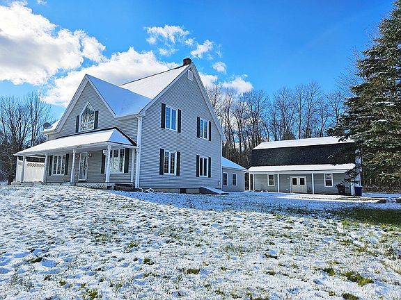 Modern sanctuary in the heart of Northern VT! Meticulously renovated home on a generous 10-acre lot offers a perfect blend of elegance and natural splendor. Step into your mudroom entryway, and you're welcomed with ornate tiles, setting the tone for the modern fixtures and rich flooring that grace every room. 3 beds and 3 baths, including luxurious primary en-suite with jetted tub. 1st floor office. Updated fixtures & recessed lighting throughout create an inviting ambiance, making every room a haven of comfort. The loft, boasting magnificent mountain views, provides an ideal retreat for relaxation and creative inspiration. Kitchen is equipped with stainless appliances and sleek countertops. Large, heated 2,218 Sqft, two-story garage adds both functionality and charm, providing ample space for multiple vehicles, shop, art studio or the creative pursuit of your choice. Efficiency meets eco-friendliness with multiple heating sources; energy efficient mini split system for heat & a/c. Central Vac. Full basement, accessible via both interior stairs & exterior walkout, offers possibilities for expansion, whether additional living space, rec room, or guest room. Step outside onto the back deck, where you'll be captivated by the expansive yard and breathtaking views of apple, maple, birch, pine, & spruce trees. Long driveway, lined with evergreens, leads you to your private oasis. ATV & snowmobile trails all around, & rivers for fishing/kayaking. Minutes to Jay Peak Ski Resort.