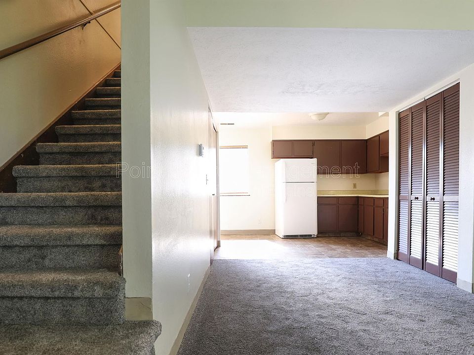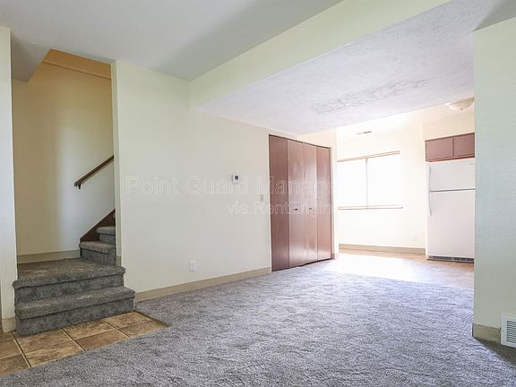 This two-bedroom townhome features carpeted living area and bedrooms, washer/dryer hookups, and ceiling fans.